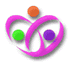 正円三つが、介護老人保健施設を象徴する色になります。 「オレンジ」は、太陽や炎の色で「明るさ」。 「グリーン」は、若葉や木の芽の色で「若さ」。 「紫」は、古くから貴いとされる色で「質の高さ」を表します。 円を取り巻くリボン状のものは「心」を示すハート型になっています。